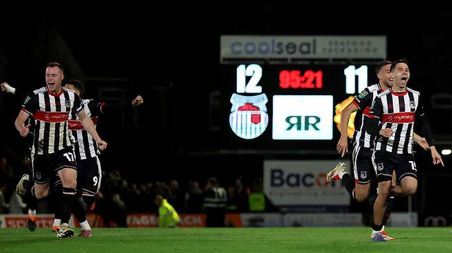 ▲ 승부차기에서 승리한 뒤 환호하는 그림즈비 타운 선수들
