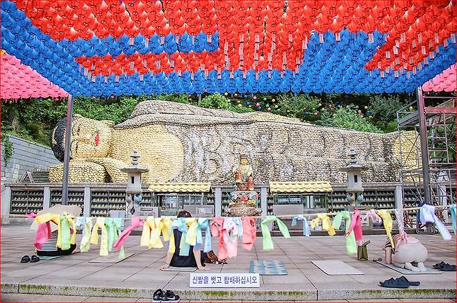 와불상 : 자갈을 모아 조성한 대형 와불상은 청계사의 명물로, 참배객들에게 깊은 인상을 남깁니다.