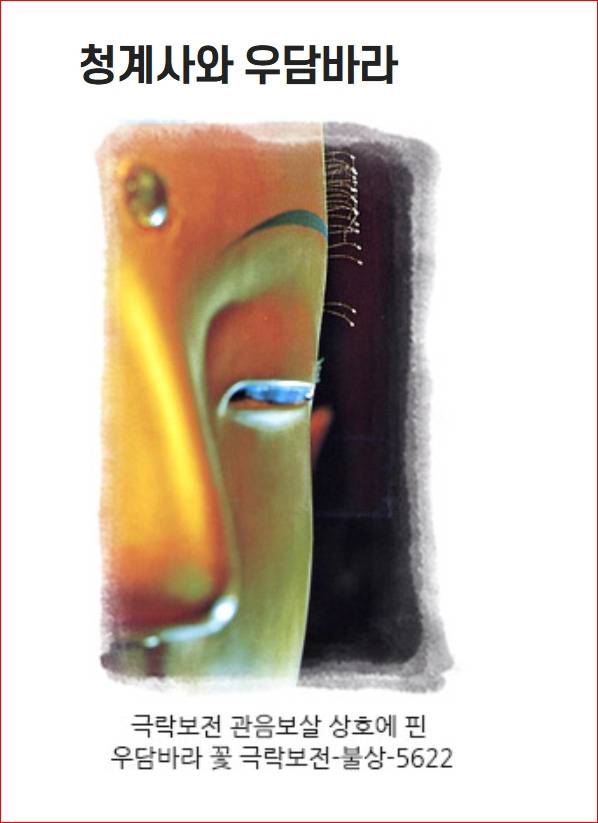 청계사는 2000년 10월, 극락보전 아미타삼존불의 관음보살상 눈썹 부근에 우담바라 꽃이 피어나 큰 화제가 되었습니다. 경전에 따르면 우담바라는 여래나 전륜성왕이 출현할 때 3,000년에 한 번 핀다는 전설의 꽃으로, 불자들뿐만 아니라 일반인들에게도 경이로움과 감동을 안겨주었습니다. 당시 21송이가 피어난 우담바라는 지금도 청계사의 특별한 상징으로 기억되고 있습니다.