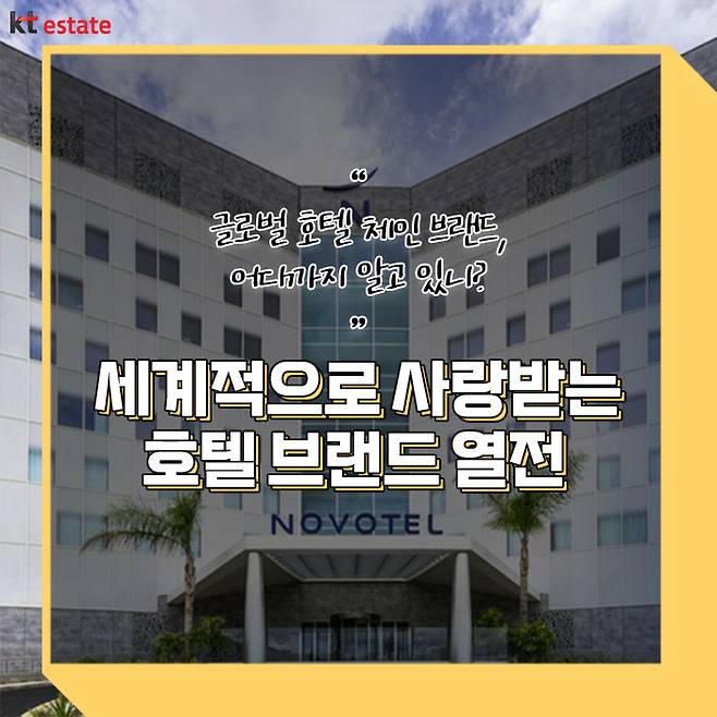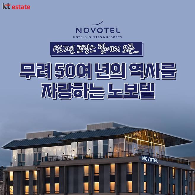 그중 노보텔 앰배서더 동대문은 세계 최초로 호텔 및 레지던스 복합형 브랜드를 내세우고, 국내 최초 AI 호텔 서비스를 도입하였으며, 노보텔 브랜드의 패밀리(Family) 정책에 기반하여 다양한 키즈 컨셉룸을 선보이는 등 업계를 선도하는 행보를 이어오고 있습니다. 얼마 전, 6주년을 맞이해 국내 최고 특급호텔로 성장해 나가는 노보텔 앰배서더 동대문의 행보를 촉망하며, 앞으로 KT에스테이트에서는 전 세계의 우수한 호텔 브랜드를 소개해 드릴 테니 다음 편도 기대해 주세요!