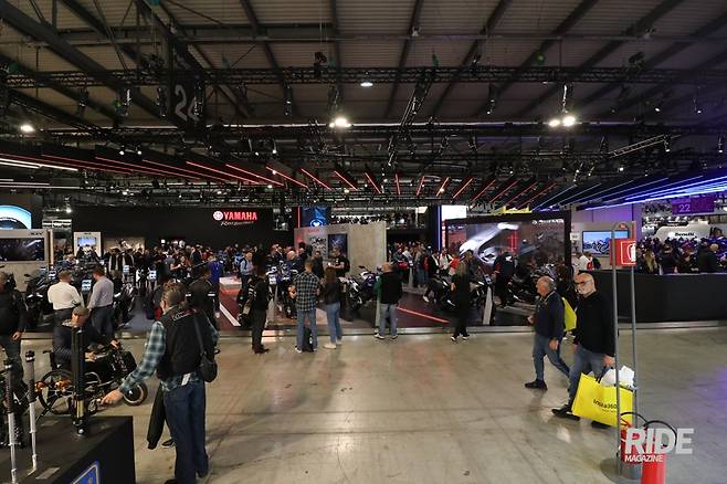 야마하는 올해도 지난해와 마찬가지로 별도의 신제품 발표 행사 없이 지난 10월부터 공개한 신제품을 전시하는 정도로만 이번 EICMA에 참가했다. 가장 주목도가 높은 모델은 새롭게 슈퍼스포츠 대표 모델의 자리에 오른 YZF-R9이었고, 자동 변속기 시스템인 Y-AMT가 투입된 트레이서 9 GT+, 전자장비 투입으로 편의성을 높인 MT-07, 디자인과 편의사양을 업그레이드한 티맥스 등도 함께 전시됐다.