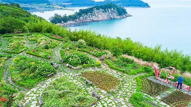 특히 여름의 하이라이트는 단연 수국정원. 해풍을 맞고 자라 색이 유독 선명한 수국들이 언덕과 길목을 따라 빼곡히 피어 있고, 그 사이를 아치형 꽃길이 잇고 있다.