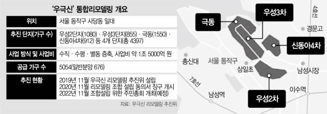 우극신 통합 리모델링은 국내 최대 규모의 사업이라는 점에서 시장의 주목을 받고 있다. 현재 총 4397가구인 4개 단지는 수직·수평·별동 증축 등을 통해 5054가구 대단지로 탈바꿈할 예정이다. 사업비만 1조 5000억 원에 달한다. 추진위는 구청으로부터 조합 설립 인가를 받은 뒤 내년 상반기 중 시공사 선정을 목표로 하고 있다.