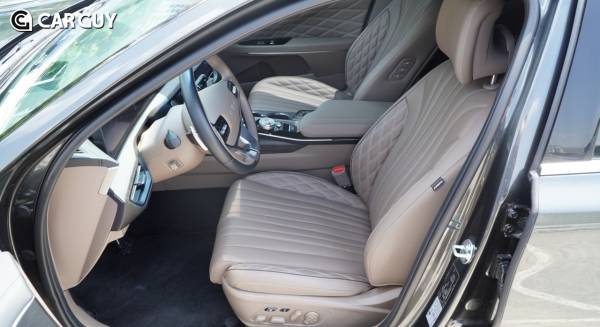 에르고 모션을 지원하는 시트는 편안하다. 고급스러운 가죽의 향연이다. 국산차에 드문 허벅지 지지대 부터 다양한 방향을 지원한다. 하지만 너무 많은 기능을 담아서일까. 키가 182cm인 기자가 편안하게 자세를 맞추기 어려울 정도로 높은 시트 높이가 불만스러웠다.