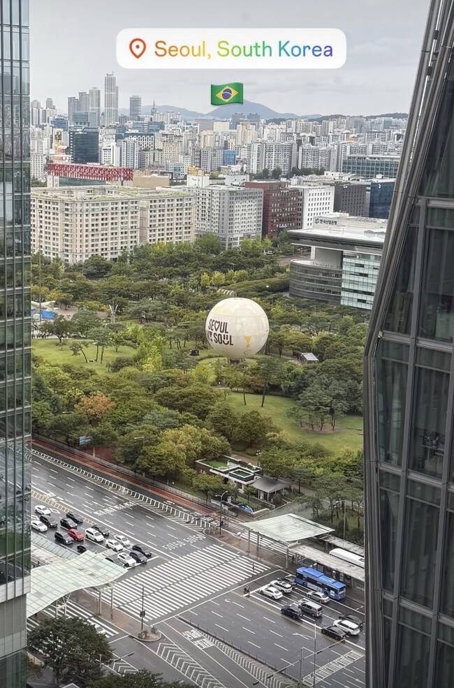 쿠냐는 6일(이하 한국시간) 개인 SNS를 통해 숙소 안에서 찍은 듯한 서울의 전경 사진을 업로드했다. ‘서울’이라는 지역 명칭과 함께 자국 브라질의 국기를 사진에 추가했다.