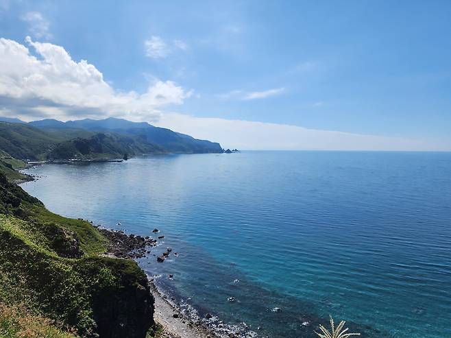 수평선에 얇게 떠 있는 구름이 아니면 하늘과 바다가 구분되지 않았다. 옥빛 섞인 코발트블루가 끝없이 펼쳐졌다. 카무이 곶의 산책로가 자아내는 멋진 풍경도 뒷전이고, 내 눈은 오로지 바다에만 고정되어 있었다.