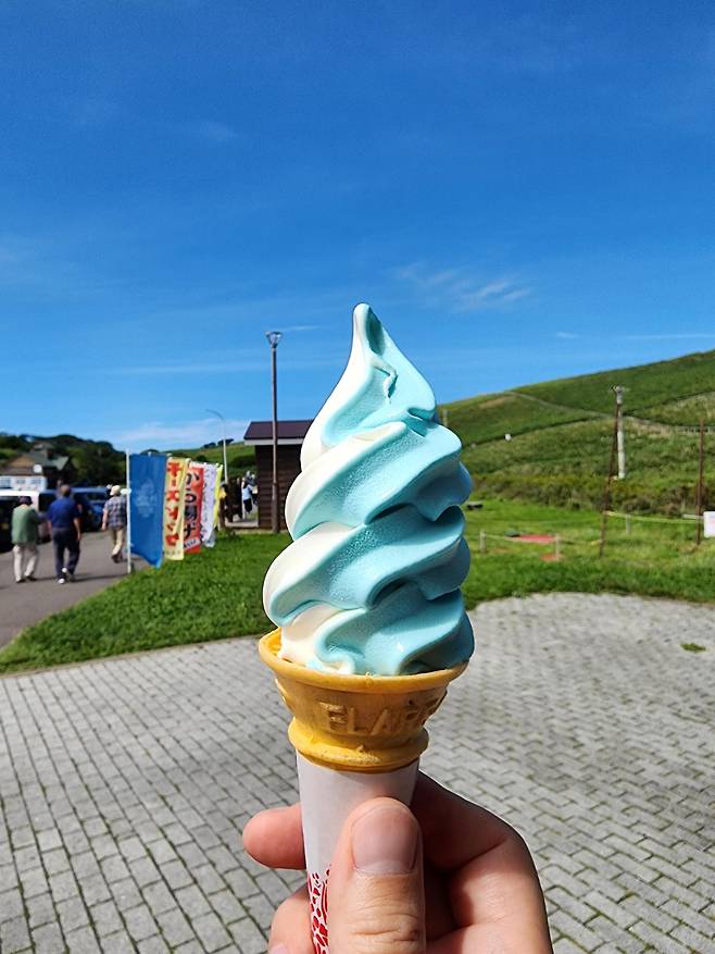 산책로에서 내려와 자연공원 건물 안으로 들어가 보니 각종 기념품과 소프트아이스크림을 팔고 있었다. 소프트아이스크림도 블루, 사이다도 블루, 사탕도 블루, 과자도 블루다. 홀린 듯 구입하게 되는 블루 매직! 차가운 에어컨 바람에 뜨거워진 몸을 식히며 샤코탄 블루 소프트아이스크림을 하나 먹는다.