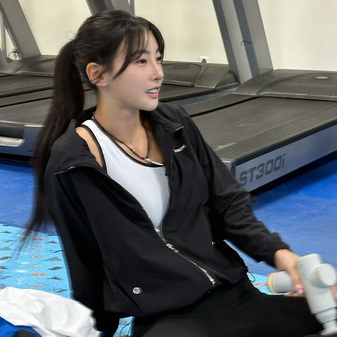 인위적인 색감을 배제한 깊은 흑발은 김민지 씨의 하얀 피부를 더욱 맑게 부각하며, 블랙 운동복과 조화를 이루어 전체적으로 통일감 있고 강렬한 아우라를 완성하는데요.
