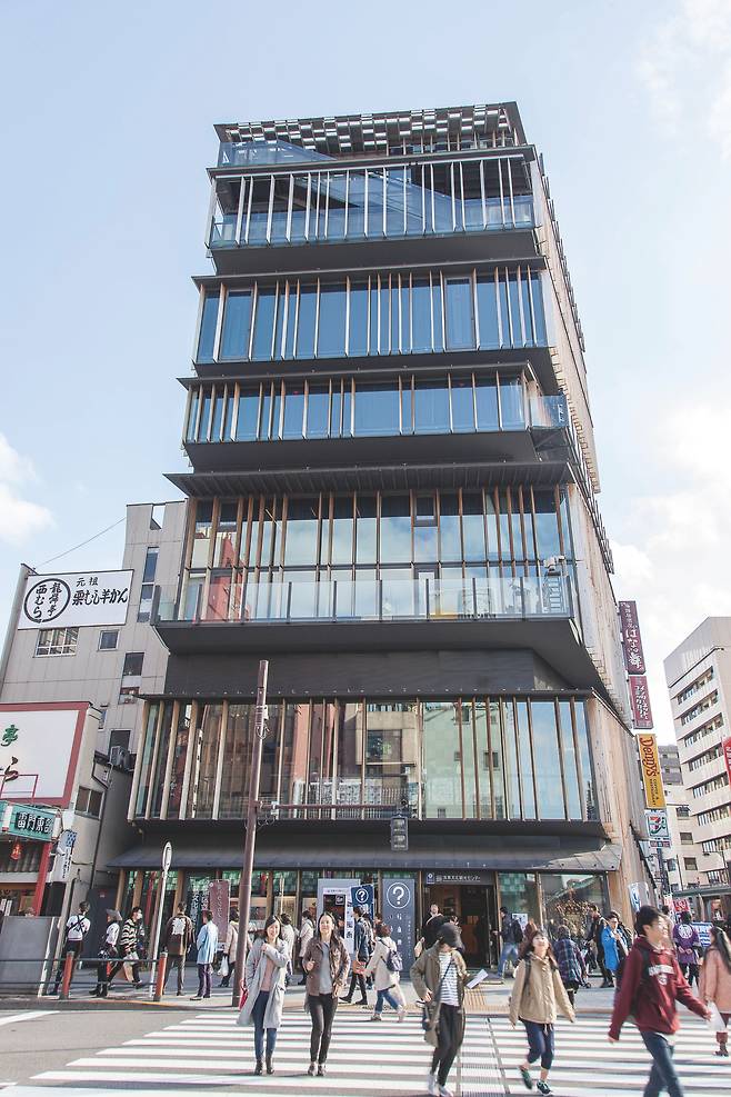 카미나리몬 바로 길 건너편에는 검은색의 근사한 건물이 하나서 있습니다. 카페나 레스토랑, 각종 숍들로 꽉 찬 복합 공간 혹은상업용 건물처럼 보이는데, 의외로 이곳은 공공 건물인데요.