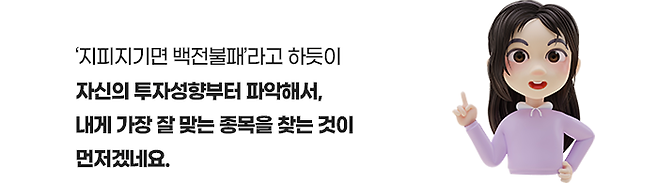 - 본 콘텐츠에서 제공되는 금융상품 및 시장 정보 등을 이용하여 투자를 했을 시 발생하는 손실의 귀책사유는 이용자에게 귀속되오니 투자는 이용자 자신의 판단과 책임 하에 신중히 결정하여 주시기 바랍니다.