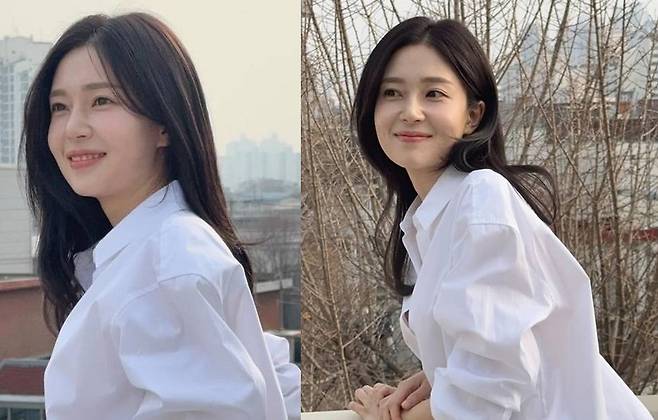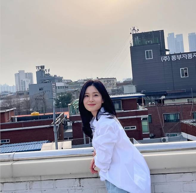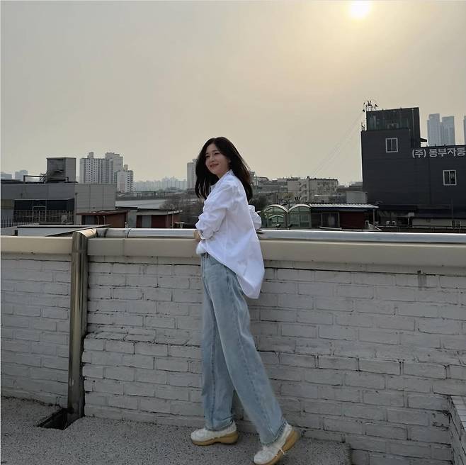 백진희가 햇살 가득한 옥상 위에서 훈훈한 데일리룩을 선보였습니다.