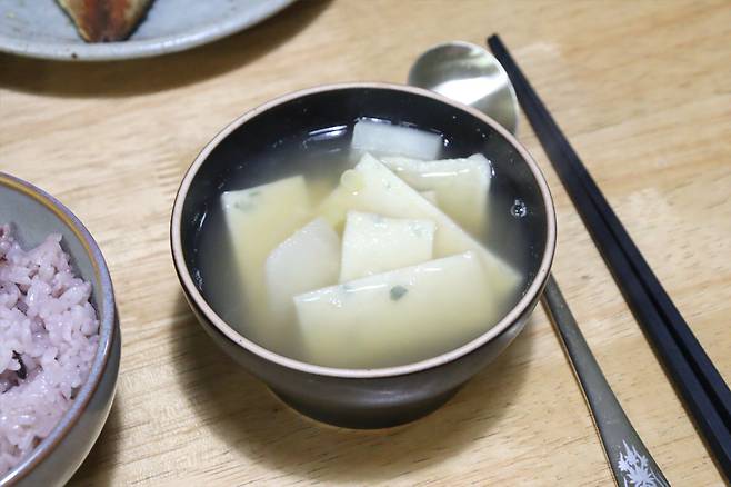 뜨끈한 밥 한 공기, 그리고 뜨끈한 어묵국 한 그릇이면 속이 든든합니다.