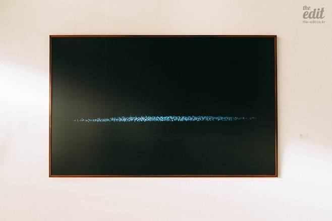 마지막으로 소개할 작품은 압도적인 풍경의 사진이다. 우포늪을 사랑한 사진작가 정봉채의 <UPOJBC130810>(2013). 멀리서 보면 어둠 속에서 연하게 빛이 나는데, 가까이서 보면 백로 떼다. 작가는 20년 동안 생태의 보고라고 불리는 우포늪에 거주하며 다양한 사진을 찍었지만, 이토록 백로 떼가 새벽에 가만히 모여 있는 건 본 적이 거의 없다고 한다. 직경 2m의 가시연잎 위에 모여 잠을 자는 백로의 모습을 촬영하는 데에는 달빛 외에 어떠한 조명도 사용되지 않았다. 우포늪이 정서적 쉘터가 된 정봉채 작가와 먼 길을 떠나기 위해 잠시 멈춘 백로의 관계성을 상상하며 사진을 감상해 보자. 세상에는 절대 파괴되어서는 안 될 쉘터라는 것도 있지 않을까.