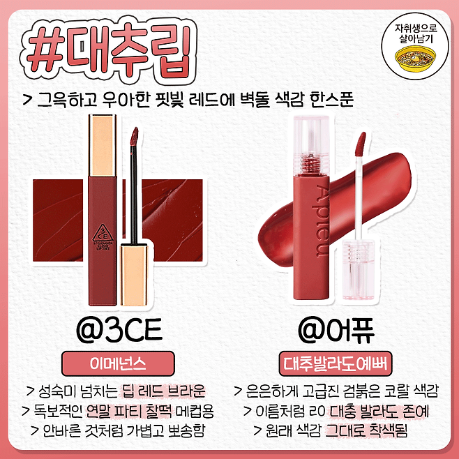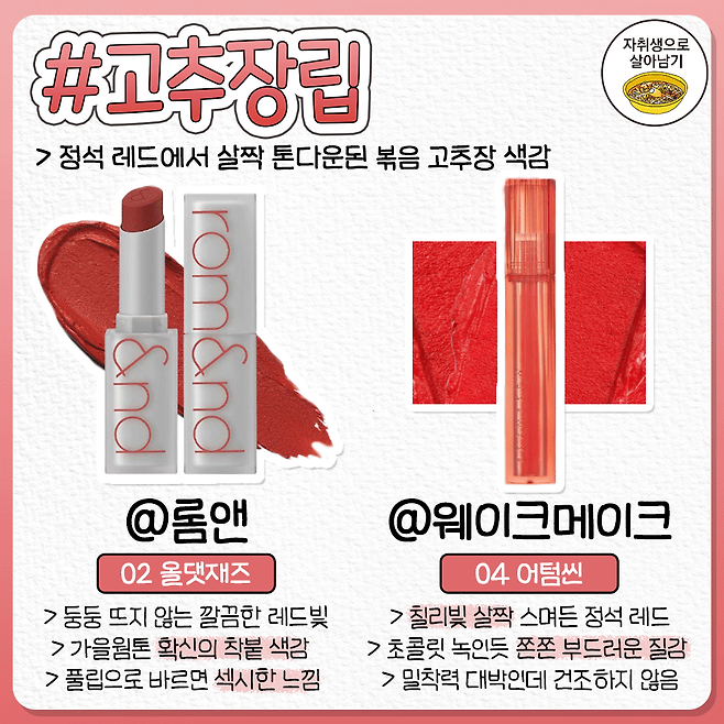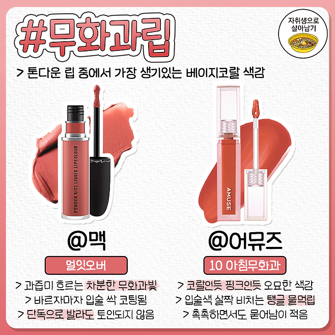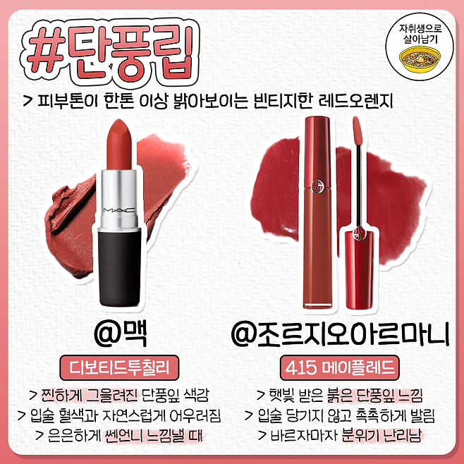 웜톤을 위한 가을겨울 메이크업 톤다운 립 추천서
