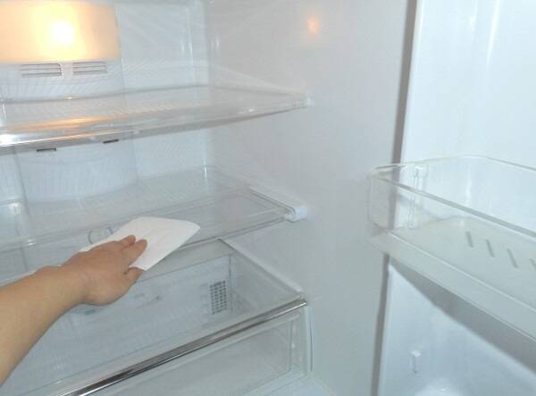 굵은 소금을 플라스틱 용기, 유리병, 종이컵 등에 담아 냉장고 선반이나 야채칸, 문 쪽 등 습기가 잘 차는 곳에 놓아두세요.