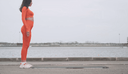 매트에 다리를 모으고 서서 준비합니다. 오른발을 뒤로 뻗어 런지 동작을 한 뒤, 발꿈치로 바닥을 눌러 원래 자세로 돌아옵니다. 이때 오른발을 앞으로 뻗는 동작을 추가해 진행하고, 이어서 왼발을 뒤로 뻗어 동일한 방식으로 운동합니다.