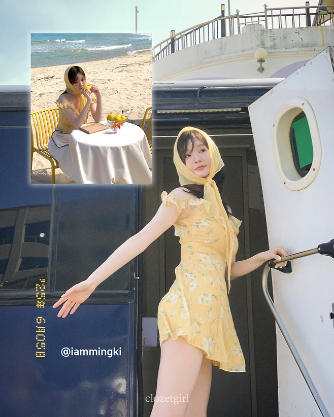 노란색 원피스로 상큼하면서 쨍한
