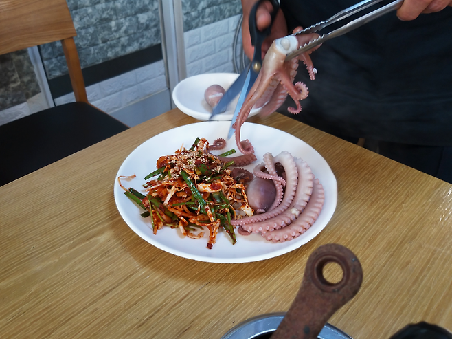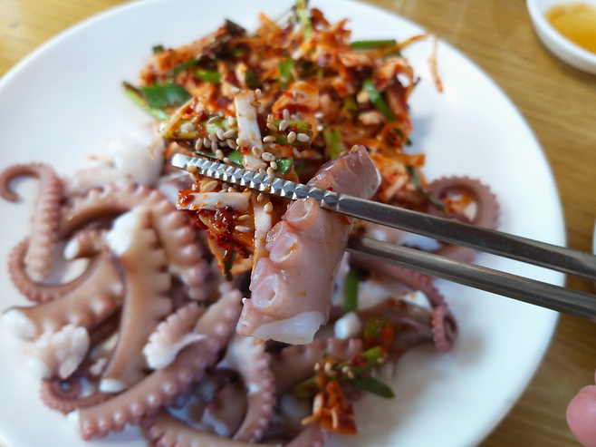 낙곱새를 기다리는 도중 같이 주문한 생낙지 숙회가 도착했습니다