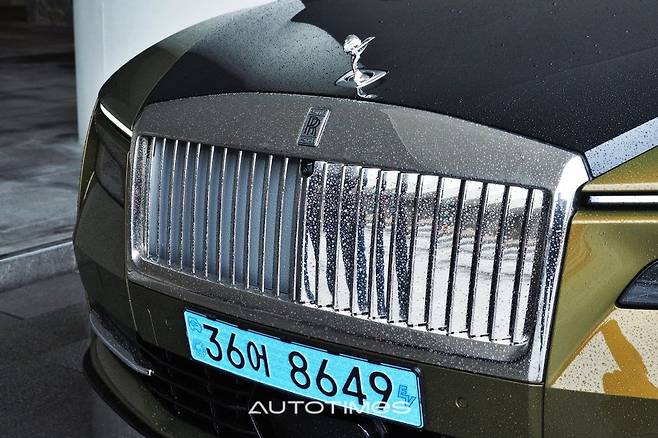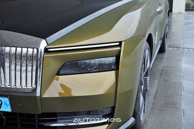 스펙터의 첫 인상은 익숙하다. 전기차다운 특별함을 드러내기 보다는 롤스로이스 본연의 모습을 더욱 강조했다. 거대한 사각 그릴과 투톤 보닛, 각을 살린 펜더 등 멀리서 봐도 단번에 롤스 패밀리임을 알게 한다. 얇은 주간주행등과 분리형 헤드램프 정도가 신형다운 유일한 차이점이다. 옆은 거대한 크기가 주변을 압도한다.