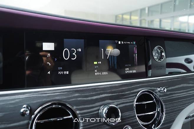 그렇다고 스펙터가 올드한 차는 결코 아니다. 디지털 요소를 대거 추가해 요즘 트렌드에 잘 부합한다. 간결한 구성의 풀 디지털 계기판을 비롯해 센터페시아 모니터도 매우 크고 빠른 반응을 보여준다. 롤스로이스 전용 UI 구성이 돋보이며 자연스러운 스와이프 감각과 선명한 그래픽이 핵심이다. 환희의 여신상을 숨길 수 있는 특화 기능도 볼거리 중 하나다.