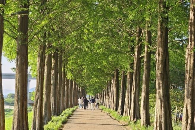 충청남도 공주시 의당면 청룡리에 있는 메타세쿼이아 산책로는 정안천 생태공원 인근에 있어 여름에 방문하기 좋은 명소다.