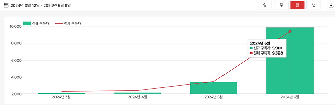5월 전체 구독자보다 더 많은 신규 구독자가 6월에 생기며