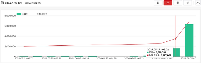 누적 조회수를 보면 5월 마지막 주를 기점으로