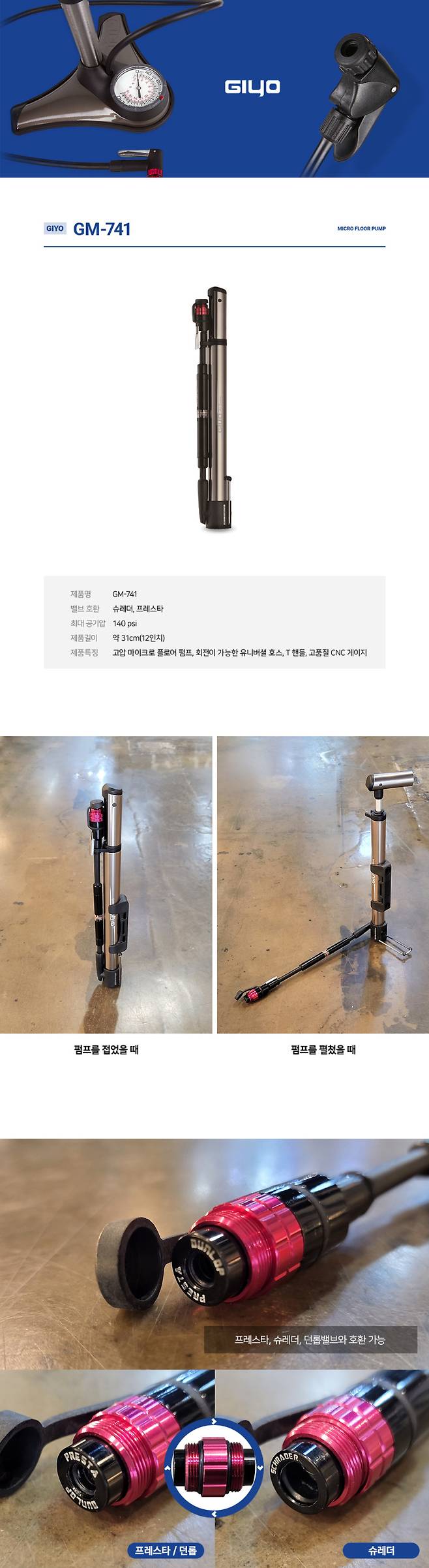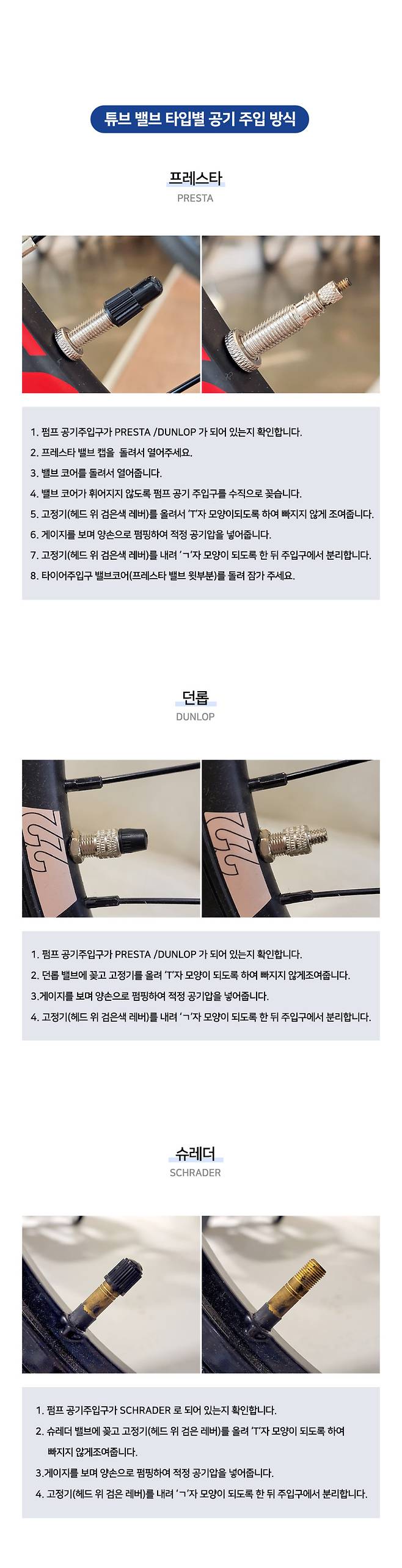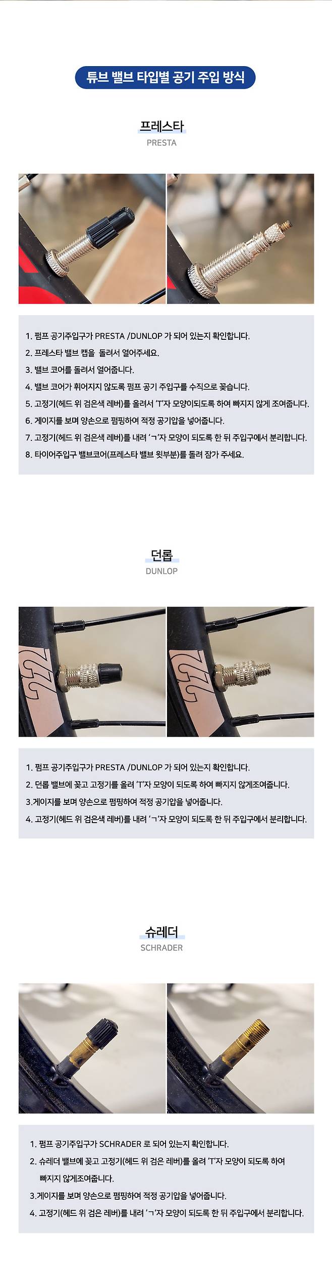던롭/프레스타/슈레더 밸브와 호환이 가능합니다.