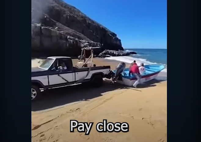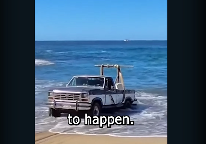 사고는 멕시코 바하 캘리포니아 남부 해변에서 발생했다. 소셜미디어에 공개된 영상을 보면 포드 픽업트럭 운전자는 해변에서 바닷물을 향해 후진하며 보트를 바다에 밀어 넣었다. 처음에는 작업이 순조롭게 진행되는 듯했으나, 곧이어 차량이 점점 더 깊은 물속으로 후진하며 상황이 악화됐다.