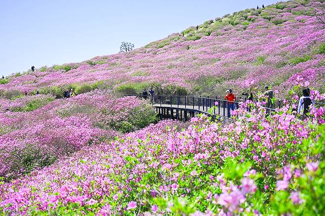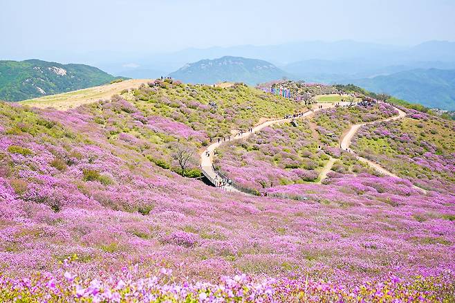 이곳은 전국 최대 철쭉 군락지로, 무려 30헥타르(축구장 42개 크기)에 달하는 광활한 면적을 자랑한다.