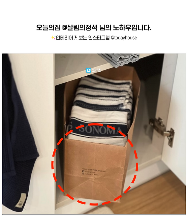 쇼핑백을 가위로 자르고 안으로 접어주면 쉽게 수납 박스로 변신한다는 점! 종이 재질의 쇼핑백이라면 다 가능합니다.