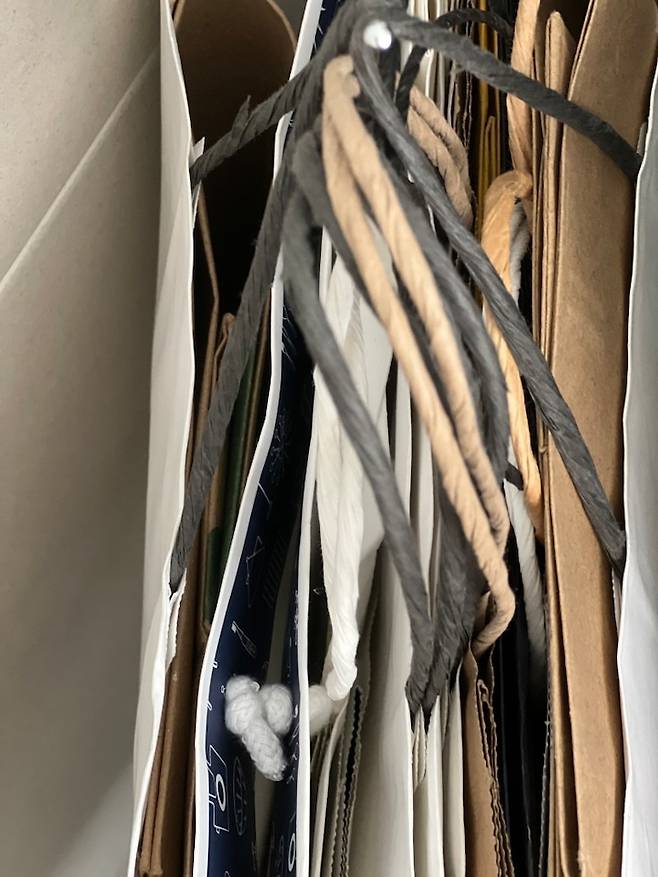 저는 쇼핑백 컬렉션처럼 다양한 쇼핑백을 모아두어요.