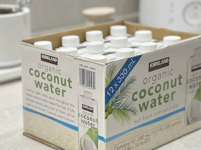 코코넛워터가 담긴 박스는 박스 위 부분을 잘라 언제든 바로 손쉽게 꺼낼 수 있게 변신시켰어요.