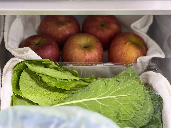 면보를 깔아 식재료 수납하기