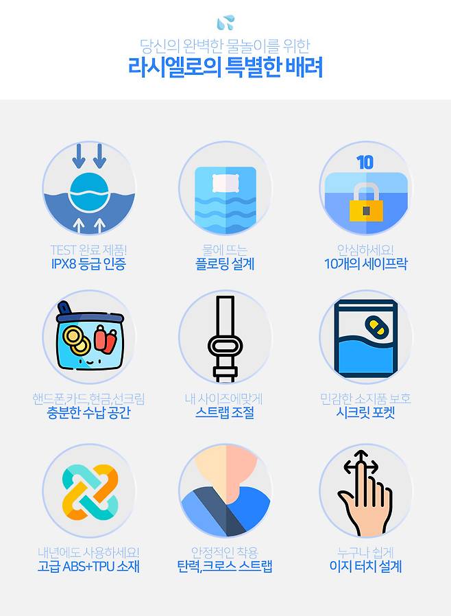 당신의 완벽한 물놀이를 위한 라시엘로 크로스 방수 플로핑 방수팩!