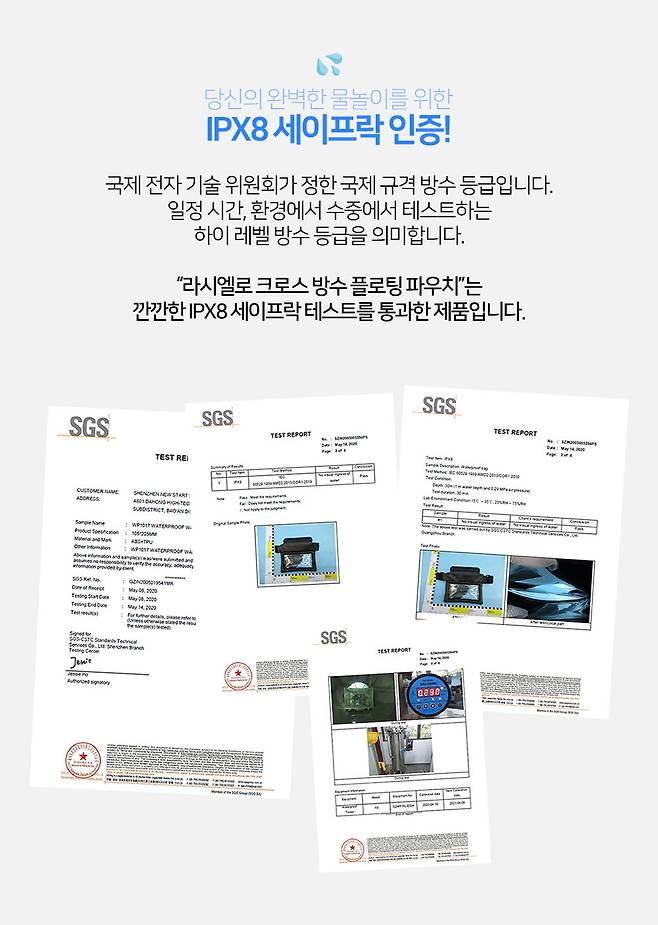 깐깐한 IPX8 세이프락 테스트를 통과한 제품입니다!