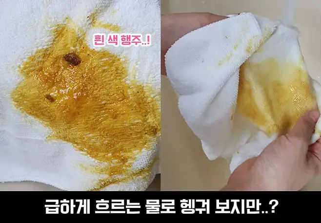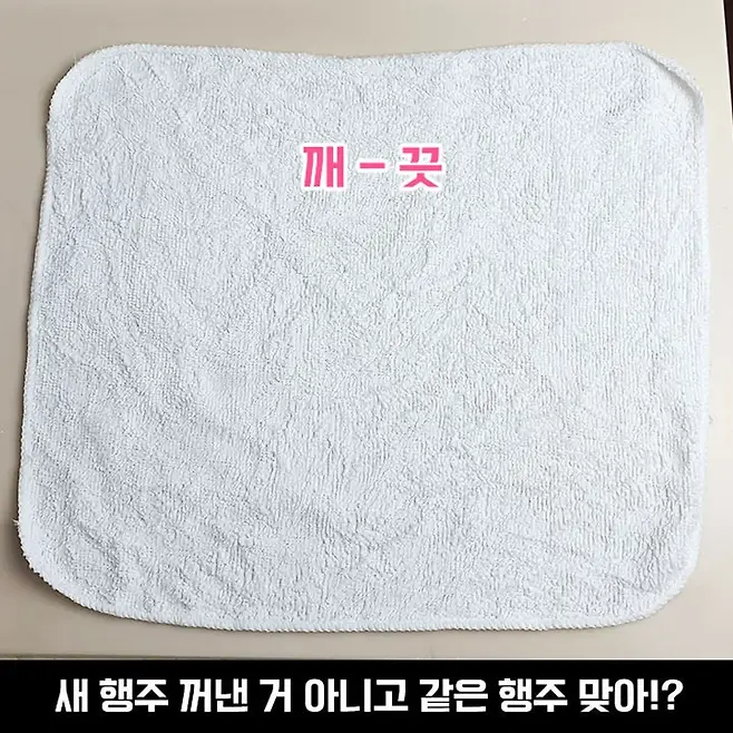여러분 정말 대박 나왔습니다! 역시 세탁하실 때 많이 사용하시는 데에는 이유가 있었던 것이었어요. 조금의 흔적이 남아있던 플라스틱과는 다르게 아예 새 행주처럼 깨끗해졌어요.
