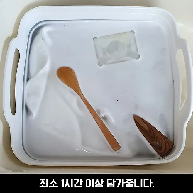 참고로 과탄산소다의 경우 금속 재질은 부식 시킬 수 있어 사용하지 않는 게 좋다고 하니 참고하시면 좋을 것 같아요! 건져낸 후에는 흐르는 물로 충분히 헹궈주는 거 잊지 마세요~☆