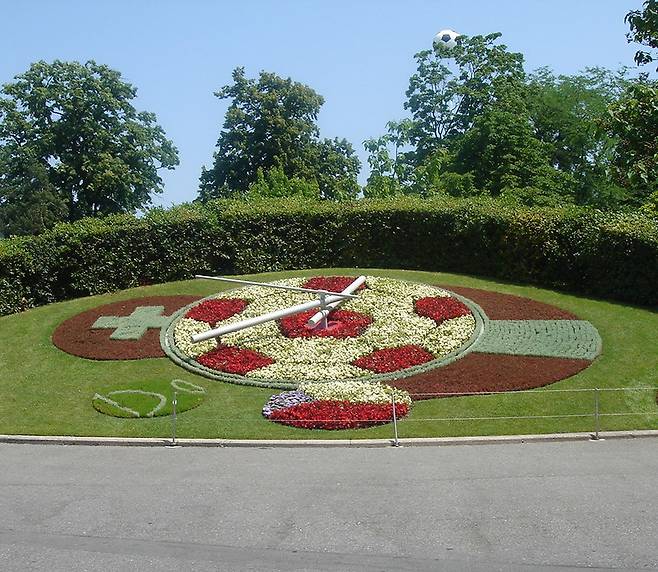 제네바에 있는 세계서 가장 큰 화단 시계다. 아름다운 호수 앞에 만 송이가 넘는 꽃을 심어 꽃밭을 만들고 그 위에 시계를 설치했다.