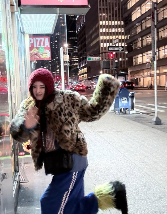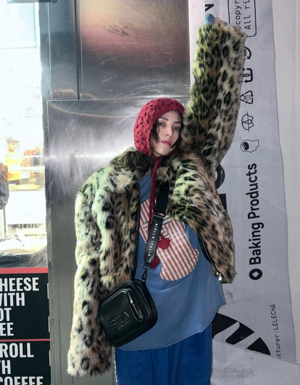 호피 무늬 퍼 재킷은 전체 룩에서 가장 눈에 띄는 포인트였어요. 대담하고 강렬한 디자인이 한소희 님만의 매력을 더해주었죠. 화려하면서도 고급스러운 느낌을 주는 아이템이었어요.
