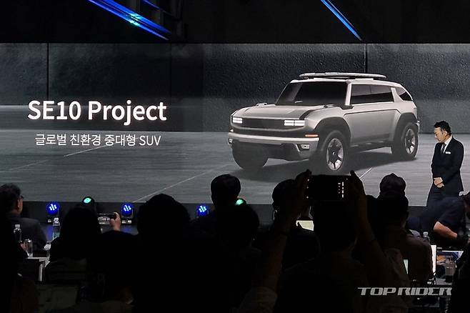 한편, KGM은 중대형 SUV 'SE10'을 오는 2026년 출시한다. 콘셉트카 F100으로 알려진 SE10은 중국 체리사와의 첫 공동 프로젝트로 'T2X 플랫폼'을 적용한다. SE10은 xEV 모델로, EREV(주행거리 연장형 전기차)로 출시될 전망이다. EREV는 PHEV 모델과 유사하며, 중국에서는 전기차로 분류된다.