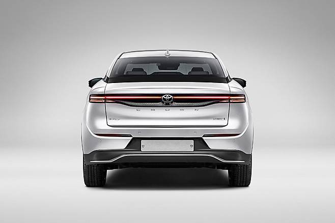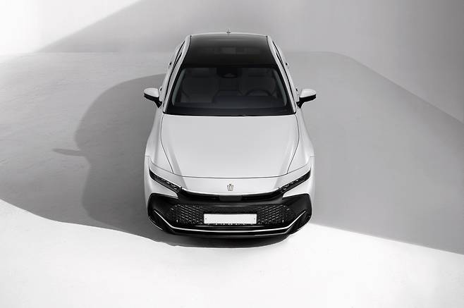 전면부에서 가장 먼저 눈에 띄는 것은 새롭게 디자인된 왕관 모양의 엠블럼이다. 날카롭고 길게 뻗은 '해머헤드' 디자인의 전면부와 수평으로 이어지는 주간주행등(DRL)은 기존 토요타 모델과 확연히 다른 개성을 보여준다. 유광 검정으로 마감된 그릴은 강렬한 인상을 더한다.