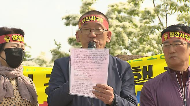 4월 10일에 이어 일주일 만에 산격청사 앞에서 또다시 항의 집회가 열렸습니다.
