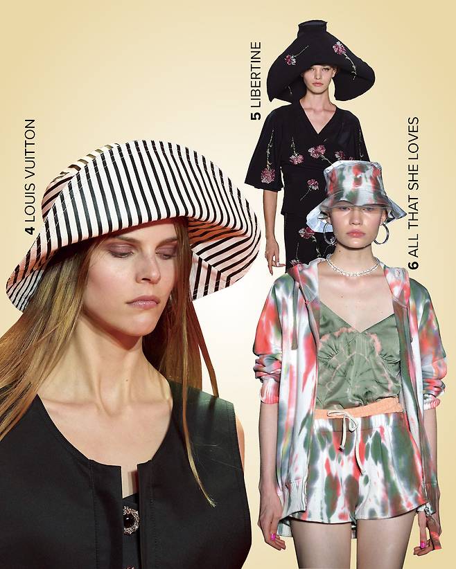 2, 3 캐플린 햇의 챙은 길수록 좋다. 어깨까지 내려오는 큼지막한 챙은 유니크한 매력과 함께 강한 햇빛에도 걱정 없이 자외선을 차단한다.
