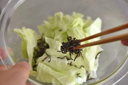 양배추는 넓게 채 썰어 찬물에 잠시 담가두기