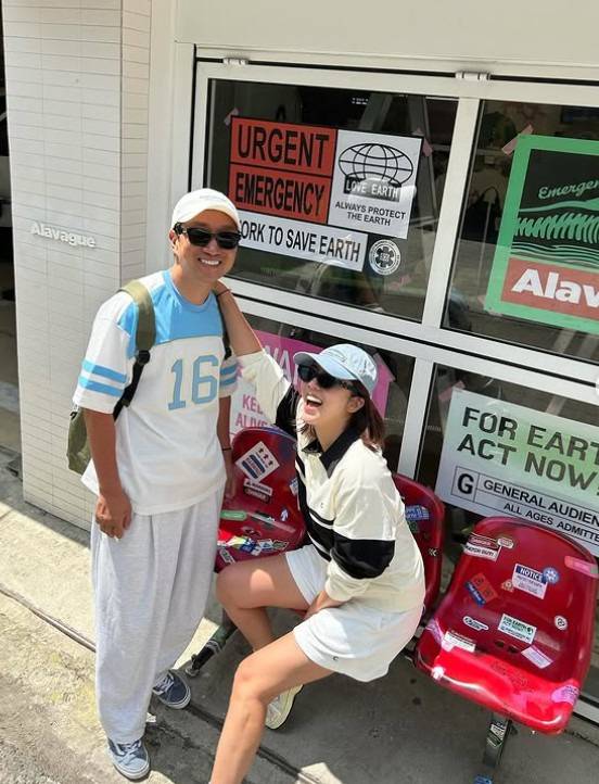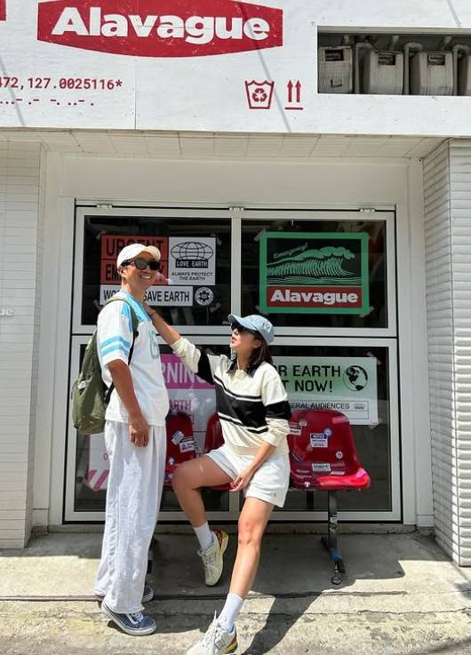 이규혁의 신발은 상의의 프린팅과 같은 색의 스니커즈. 패션 센스가 돋보여요.