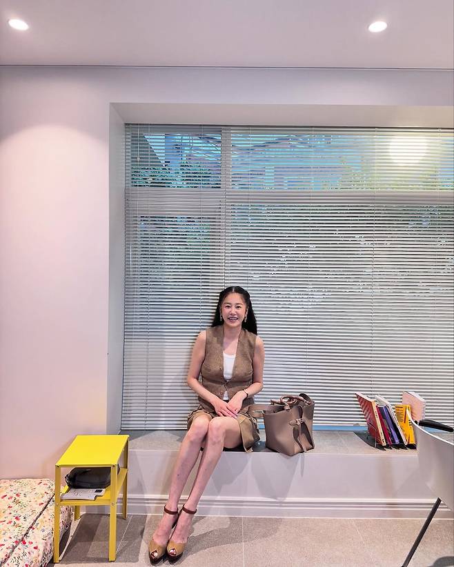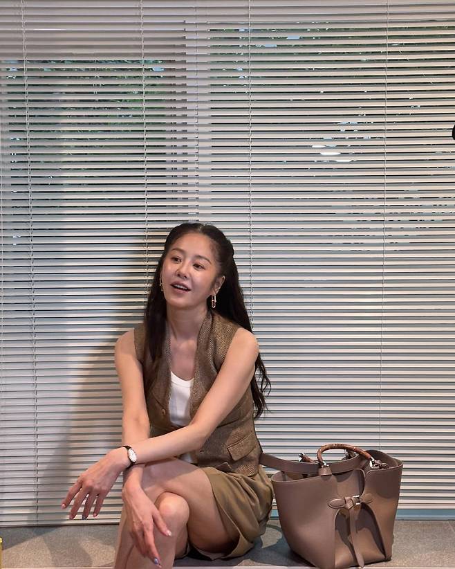 공개된 사진 속 그는 민소매 베스트에 브라운 컬러의 미니스커트를 매치해 단정하면서도 세련된 무드의 데일리룩을 완성했다.