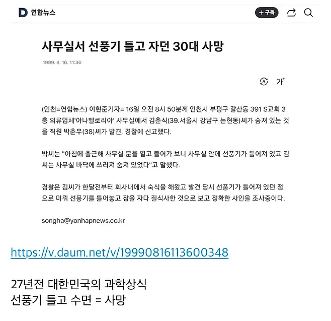사무실에서 선풍기 켜고 자다 죽은 30대.gisa