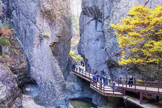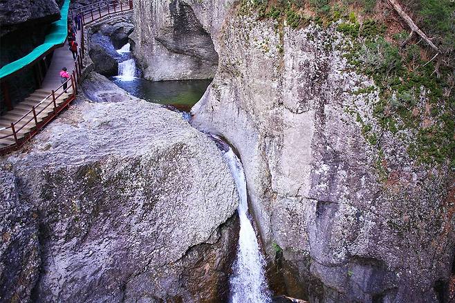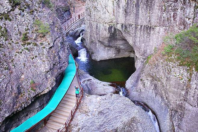 크고 작은 암봉들이 촘촘히 어우러져 만들어내는 협곡과 깊은 계곡은 경이롭기 그지없다. 특히 암벽에 둘러싸인 장군봉과 용추폭포, 그리고 울창한 숲길이 어우러진 대전사 일대는 주왕산을 대표하는 절경 포인트다.