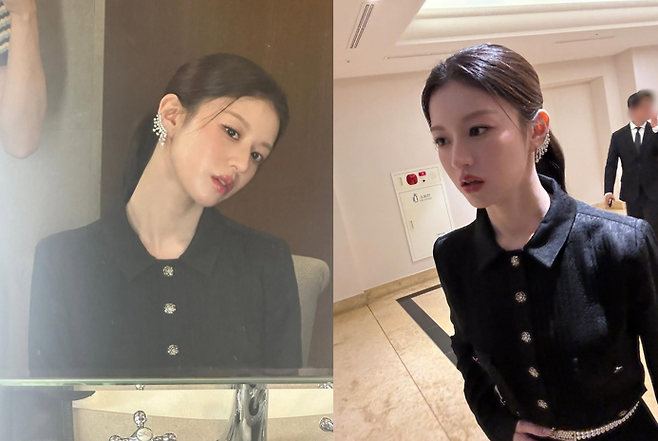 사진 속 그녀는 클래식한 디자인의 블랙 재킷으로 단정하면서도 고혹적인 매력을 뽐냈습니다.
